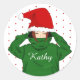 Mignonne fille avec Sweat - shirt à capuche vert Sticker de Noël Santa Hat. Un joli dessin d'une fille portant un sweat - shirt à capuche vert et un chapeau de Père Noël rouge. Conception amusante pour une fille. Ajoutez votre nom.