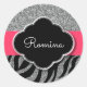 Sticker Rond Fille Parties scintillant rose zèbre modèle Nom pe