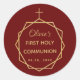 Sticker Rond Fille Première Communion Bourgogne Rouge Or modern