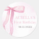 Sticker Rond Fille Rose Bow 1er anniversaire