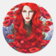 Girl Cachée Dans Les Fleurs De Pavot Champ imaginaire art Sticker rond