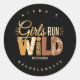 Adoptez votre côté sauvage avec ce cadeau de bachelorette ou autocollant de mailing à thème safari glamour. Caractérisé par une typographie audacieuse « Girls Run Wild » avec des impressions de peau d'animal colorées et une typographie moderne chic. Entièrement personnalisable pour s'adapter à votre fête safari ou week-end de bachelorette, ce design est un accessoire de décoration idéal pour une célébration glamour sur le thème safari, jungle ou imprimé animal. Recherchez ID1148 pour voir d'autres produits de cet ensemble de design de bachelorette amusant.