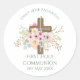 Sticker Rond Filles Première Sainte Communion Croix Florale Cus