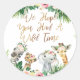 Filles safari or calligraphie anniversaire en faveur Classic Round Sticker Cute girls safari thème fête d'anniversaire en faveur autocollant comprenant quatre mignons animaux de la jungle, diverses fleurs colorées et audacieux feuillage de la jungle verte. Le texte de calligraphie en faux or est une image et peut être supprimé.
