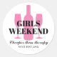 Filles week-end à l'écart de la dégustation de vin soirée Classic Round Sticker. Autocollants personnalisés et scellés d'enveloppe. Ajoutez votre propre destination et une citation amusante. Moins cher que la thérapie. Conception silhouette verre et bouteille pour la fête de bachelorette, douche nuptiale, Anniversaire, mariage, cueillette de vignobles, voyage vinicole, vacances, escapade, escapade, sorties pour filles, etc. Design élégant avec modèle de texte élégant. Couleurs roses et noires personnalisables.