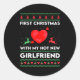 Sticker Rond First Xmas With My New Girlfriend Men Ugly Christ