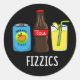 Sticker Rond Fizzics Funny Fizzy Cola Boissons Pun Dark BG