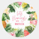 Sticker Rond flamant jaune rose fleuri tropical élégant