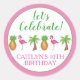 Sticker Rond Flamant rose d'anniversaire Palm Tree Pineapple