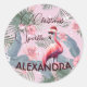 Sticker Rond Flamant rose de Noël Tropical Personnel