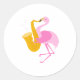 Sticker Rond Flamant rose Jouer Saxophone Saxophoniste Funn