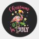 Sticker Rond Flamant rose rose à Santa Hat Noël en juillet pour