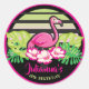 Sticker Rond FLAMANT ROSE ROSE CHAUD Feuilles tropicaux Sceau É