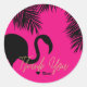 Sticker Rond Flamant rose rose et noir & Palm Tropical Party