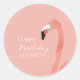 Sticker Rond Flamant rose rose Joyeux Anniversaire Nom personna