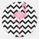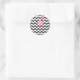 Sticker Rond Flamant rose rose monogramme + Chevron noir