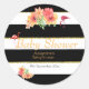 Sticker Rond Flamant rose tropical Baby shower à bande noire