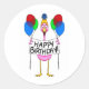 Sticker Rond Flamant rose Whimsical Joyeux Ballons d'Anniversai