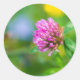 Vue rapprochée d'une fleur de trèfle rose contre l'arrière - plan multicolore lisse d'une prairie d'été. Couleurs violettes, vertes, jaunes et bleues. Le symbole de la bonne vie, du confort, de la richesse et de la prospérité