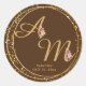 Sticker Rond Fleur d'or monogramme blanc minimal