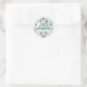 Sticker Rond Fleur rose Bleu Berry Wreath Aquarelle Nom