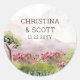 Autocollants de mariage personnalisés avec nom de mariée et de mariée et date mariage. Aquarelle paysage de la campagne et avec des montagnes et des fleurs dans les tons rose et vert. Pour coordonner les invitations, la papeterie et le décor de jour de l'événement, veuillez consulter ma Collection Country Meadow ou m'envoyer un message pour ajouter tout autre objet dont vous avez besoin.