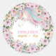 Sticker Rond Fleur rose Unicorne magique 1er anniversaire