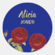 Ajoutez votre nom sur cette fleur rouge et feuilles verts sur le motif arrière - plan bleu.