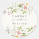 sticker mariage floral romantique, avec un arrangement floral délicat aquarelle et un élégant monogramme. Parfait pour les mariages de jardin, les fêtes de printemps ou tout événement à thème fleuri ou rustique.