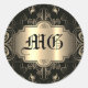 Sticker Rond Fleurs abstraites monogrammes noir et or