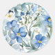 Sticker Rond Fleurs aquarelles bleu blanc chic