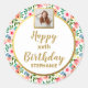 Sticker Rond Fleurs aquarelles, photo personnalisée, joyeux ann