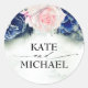 Sticker Rond Fleurs bleu marine et rose Élégant moderne