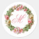 Sticker Rond Fleurs d'Apple et couronne Rose avec Monogramme