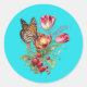 Sticker Rond Fleurs d'aquarelle avec papillons visités
