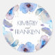 Sticker Rond Fleurs d'aquarelle bleu Boho Feathers Mariage