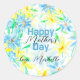 Cet autocollant de la fête des mères présente un écran brillant et coloré de fleurs d’aquarelle, avec des fleurs bleues et jaunes ensoleillées. Ce motif fleuri dégage chaleur et affection, ce qui en fait un cadeau idéal de reconnaissance pour toute mère. Le texte "Bonne Fête des Mères" est inscrit avec goût au milieu, apportant une touche personnelle au design. Le nom de l'expéditeur peut être customisé au bas de l'autocollant, ce qui vous permet de transmettre un message personnalisé. L'ensemble du design dégage une ambiance lumineuse et joyeuse, parfaite pour exprimer de l'affection à l'occasion de la Fête des Mères. Le joli motif floral aquarelle combiné à l'élégant texte cursif font de cet autocollant un cadeau merveilleux et émotionnel pour la fête des mères.
