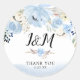 Sticker Rond Fleurs d'aquarelle bleu Monogramme Mariage Faveur