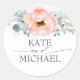 Sticker Rond Fleurs d'aquarelle de pêche Mariage bleu foncé