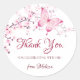 Un joli cerisier rose fleurit un beau papillon rose et merci mot dans un élégant script calligraphique. Cet autocollant correspond à ma petite papillon de baby shower. Customisez-le avec votre nom.