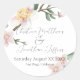 Cet autocollant de mariage romantique présente un beau thème floral. Le fond est simple et élégant, blanc avec des fleurs de pommier aquarelles. Une branche de fleurs est placée en haut, et deux fleurs roses sont placées en bas à droite, encadrant le texte au milieu.