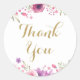 Sticker Rond Fleurs de roses à l'aquarelle Or Script Merci