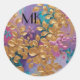 Sticker Rond Fleurs D'Or Peintes Sur Lilac Rose Turquoise