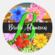 Sticker Rond Fleurs Élégantes : Nom de Script Monogramme Chic e
