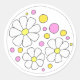 Sticker Rond Fleurs marguerites rétro avec cercles rose et jaun