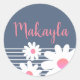 Sticker Rond Fleurs marguerites rose Rose Pastel Blue Nom