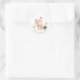 Sticker Rond Fleurs roses chaudes vert feuille papillons mariag