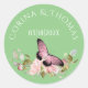 Sticker Rond Fleurs roses et papillon sur Mariage vert
