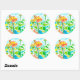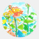 Sticker Rond Fleurs sauvages jaunes Rose orange