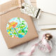 Un joli autocollant floral décoré de roses orange vif et jaune accentué de fleurs sauvages jaunes et d'un arrière - plan turquoise dessiné à l'encre et peint à l'aquarelle.